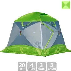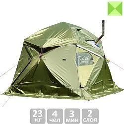 - «Компакт» - боковые стенки палатки оснащены уникальным компактным каркасом «Лотос» системы «куб» с двойным складыванием нижних длинных дуг.