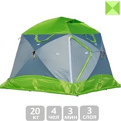 Опорная стойка устанавливается изнутри в предварительно раскрытой палатке. При установке стойки один ее полый конец вставляется в направляющий винт, расположенный в нижнем углу палатки, а противоположный конец стойки фиксируется в верхнем углу откидным карманом из стропы.
