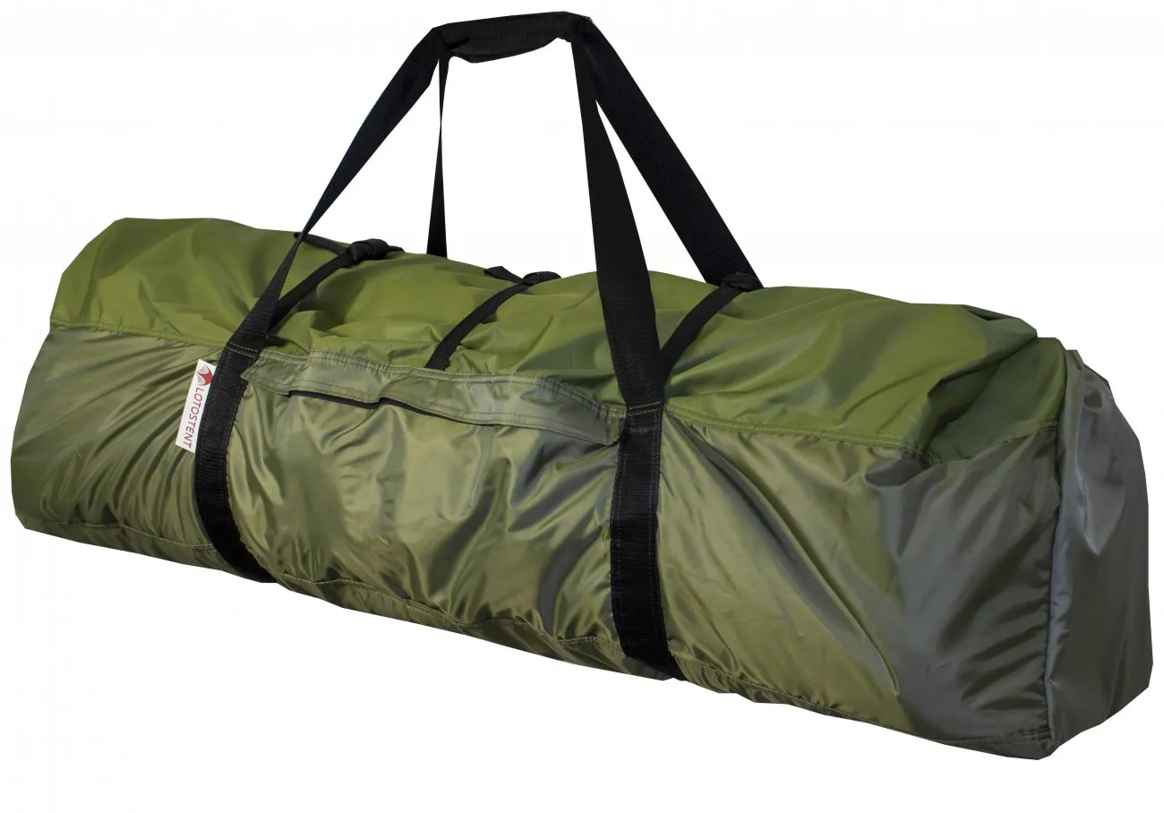 Для тяжелых моделей палаток (более 10 кг) переносить сумку рекомендуется строго горизонтально и одновременно за обе ручки, а лямки выполнены без регулировки по длине.