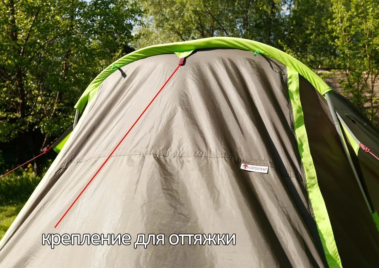 Для использования веревочных растяжек, установленных на дугах палатки, в тенте встроены специальные клапаны с защитой от осадков.